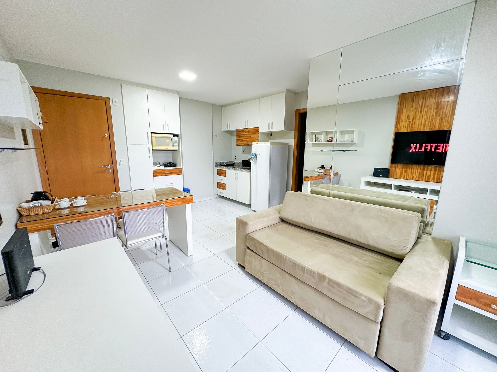 Fique hospedado nesse excelente apartamento no Premier residence e desfrute de toda a sua área de lazer, como também da área do famoso Lake Side! Aqui você pode contar com uma ótima wi-fi, TV smart, Ar-condicionado Apenas no quarto, além de possuir um sofa-cama espaçoso!