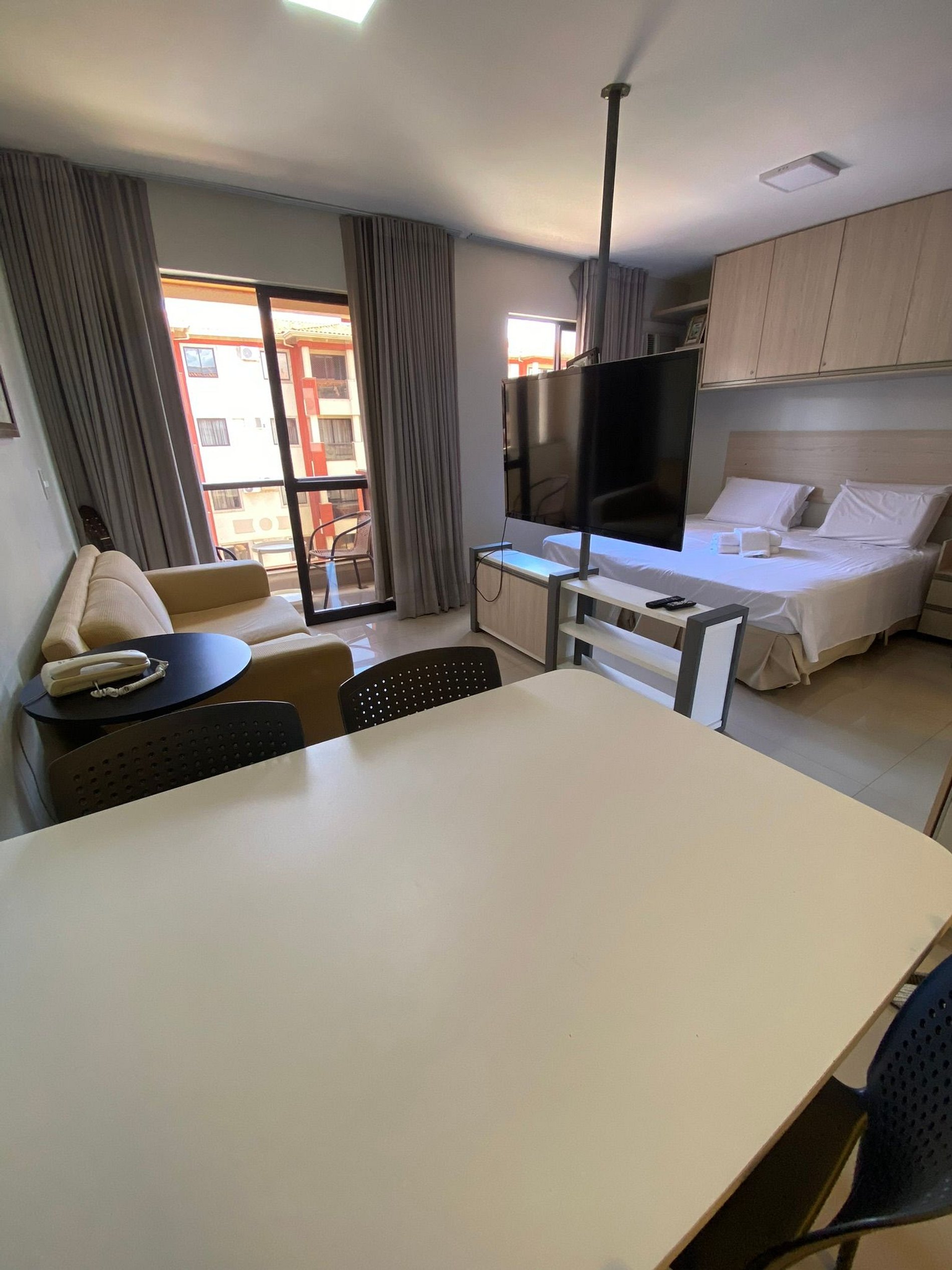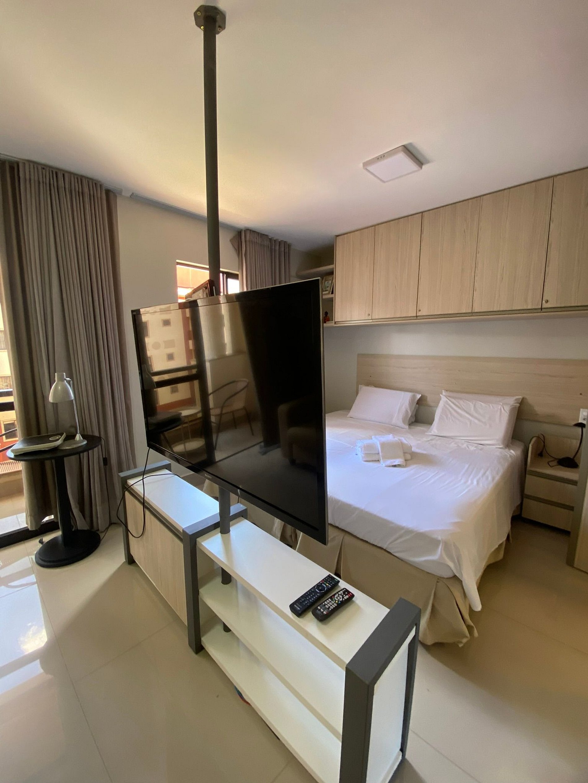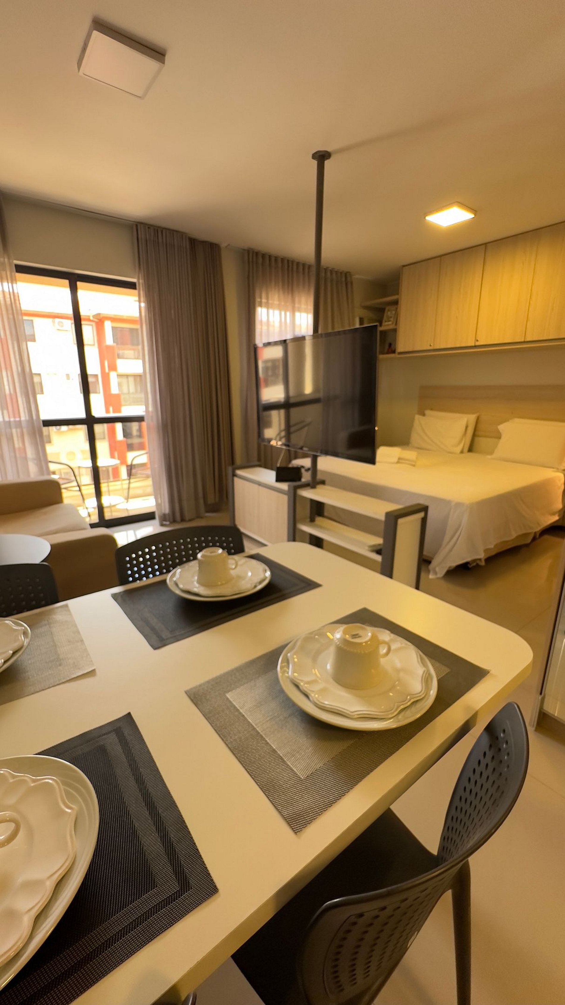 Venha se hospedar nesse flat, com uma excelente cozinha, e um espaço aconchegante e aproveita para desfrutar de um condominio completo com piscina beira lago e vários comércios como conveniência, farmácia, barbearia, restaurantes, coworking e muito mais!