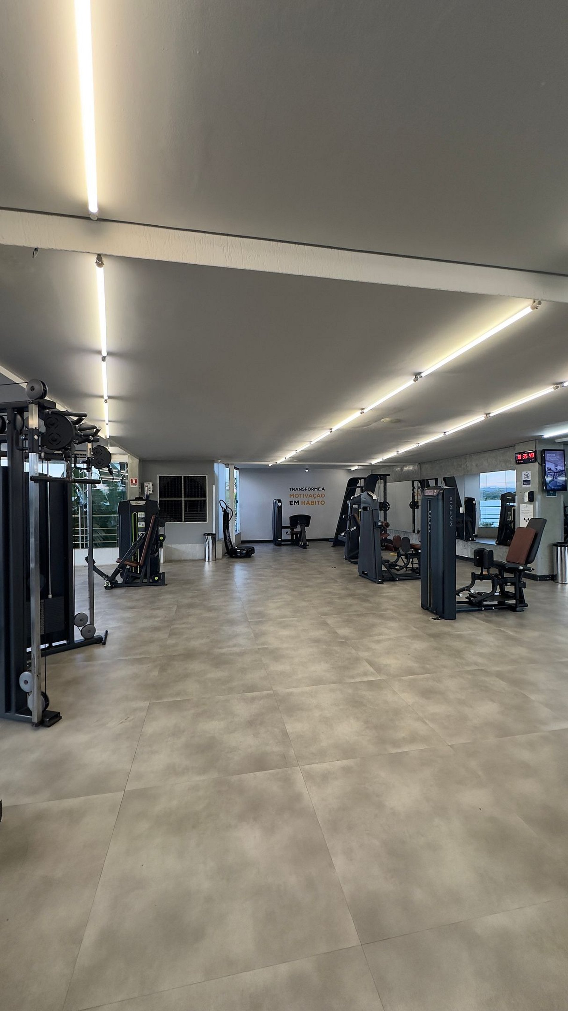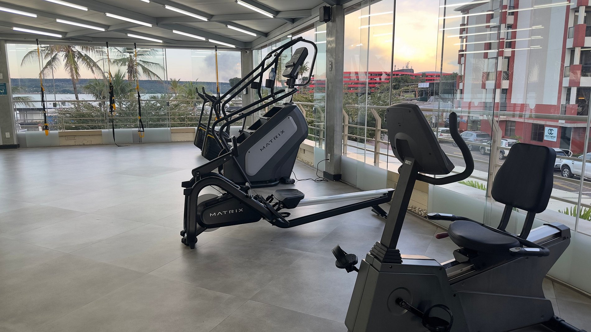 A piscina e a academia com uma vista linda para o lago paranoa