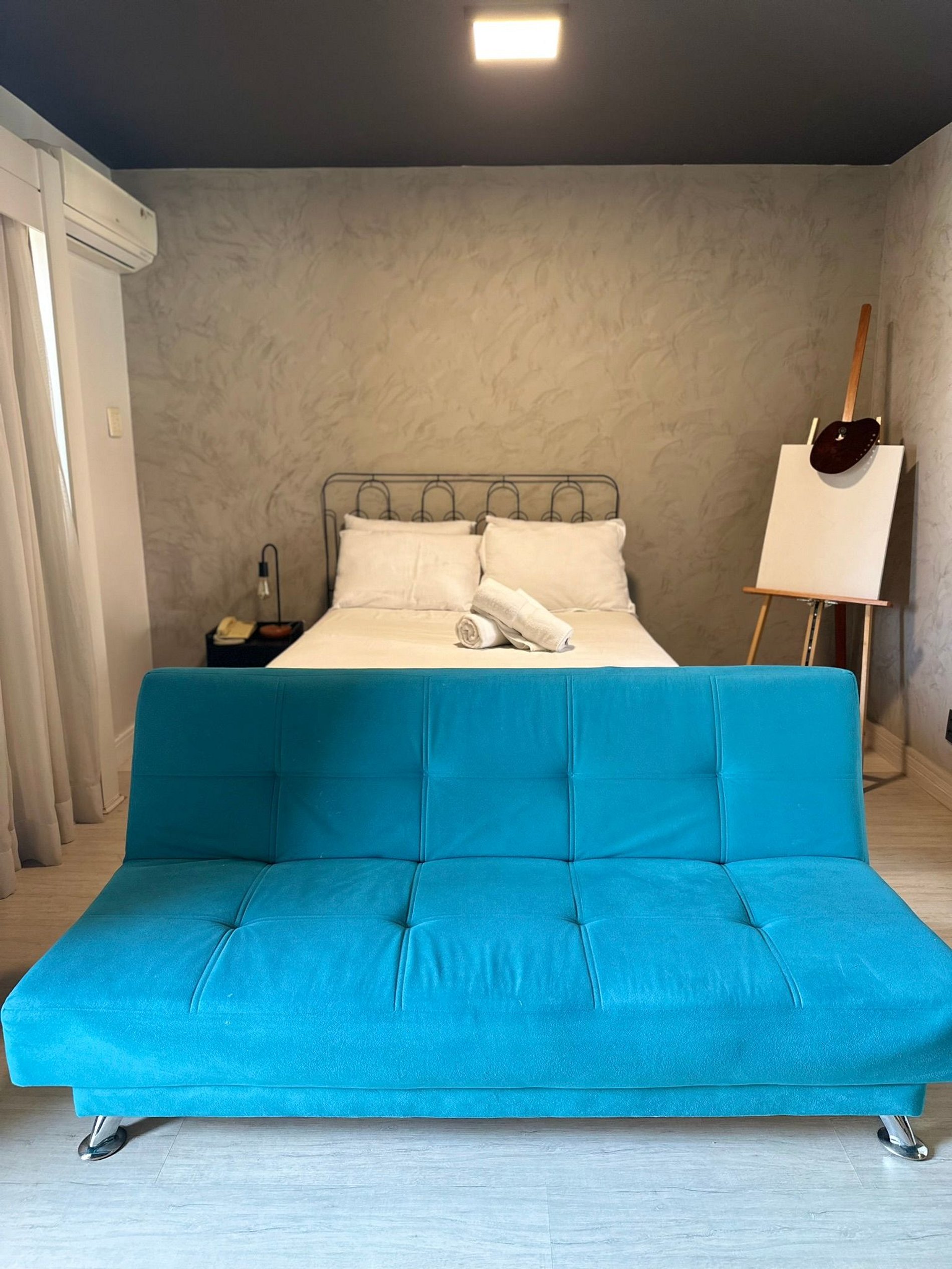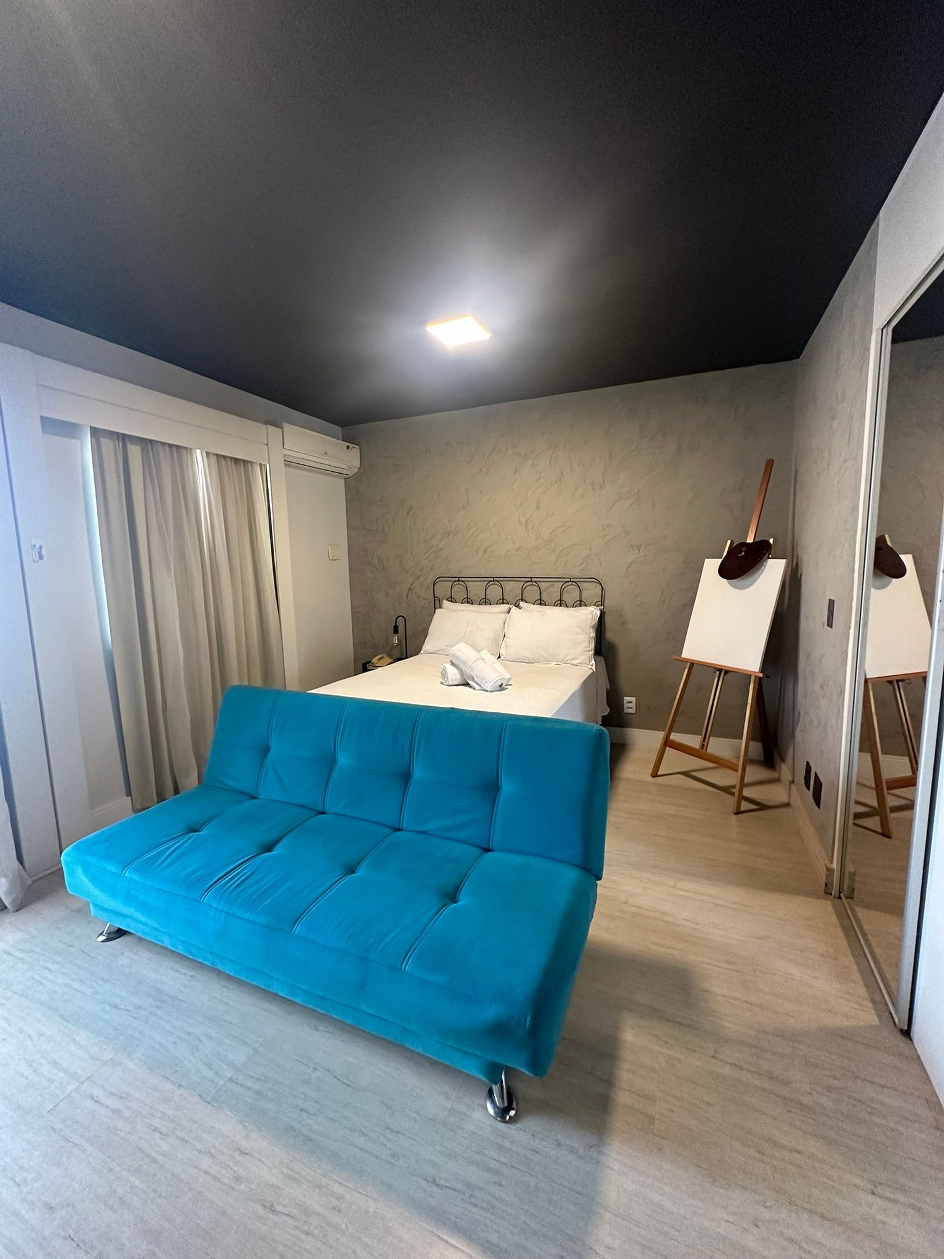 Pensamos em todos os detalhes para garantir estilo, conforto e sofisticação na medida certa. Comodidades do apartamento: Decoração moderna, closet espaçoso, cama e sofá-cama confortáveis, TV a cabo, wi-fi de 100mb, geladeira, microondas, liquidificador, cafeteira, fogão, forno, sanduicheira e utensílios básicos de cozinha.