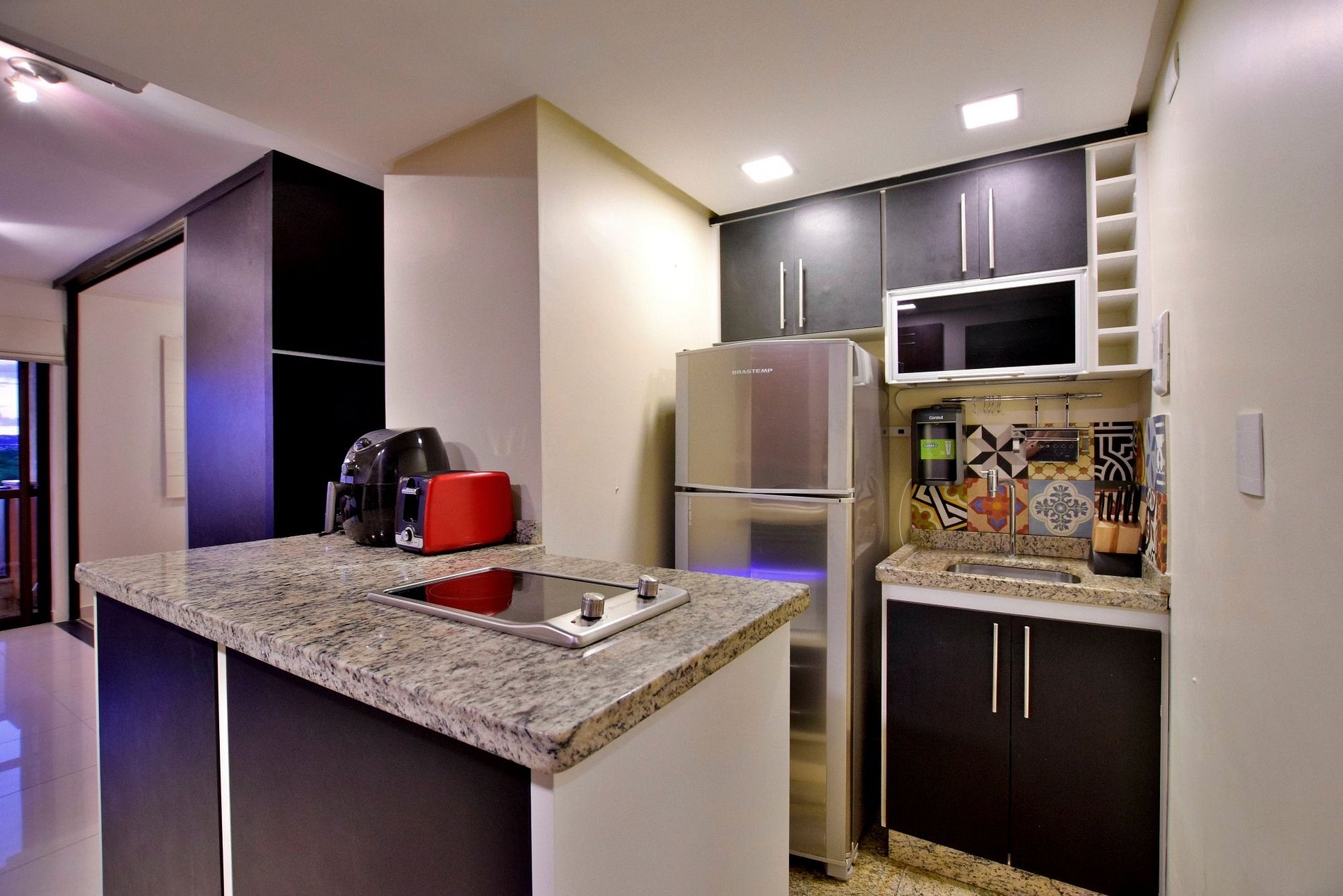Além disso, o condominio é super completo, com uma academia completa, barbearia, conveniência, farmacia, lavanderia e ainda fica ao lado de restaurantes famosos como o Rei do camarão e o Vennice.