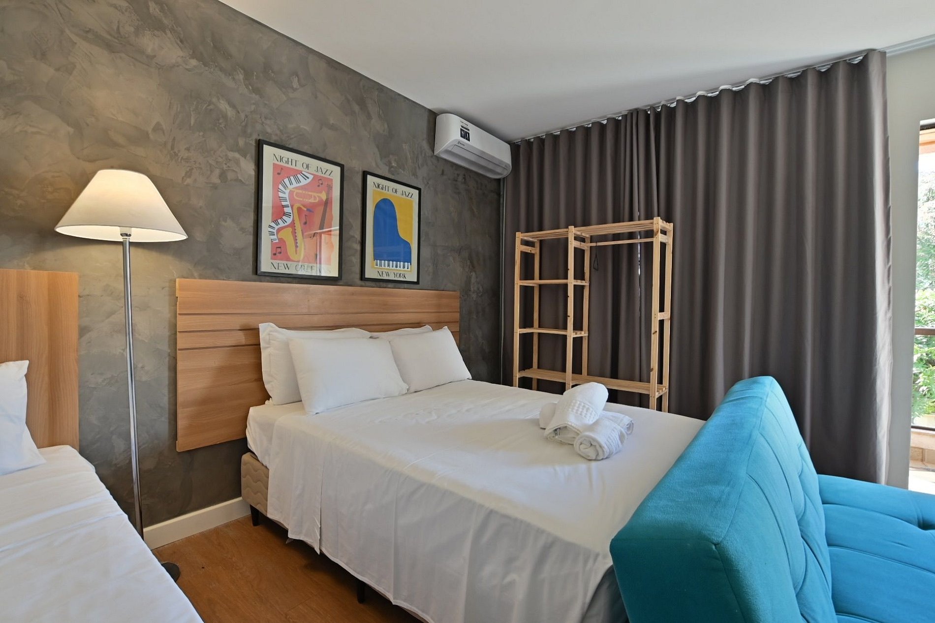 O quarto é bem espaçoso. não possui cozinha porém é uma excelente acomodação que acomoda até 5 pessoas.