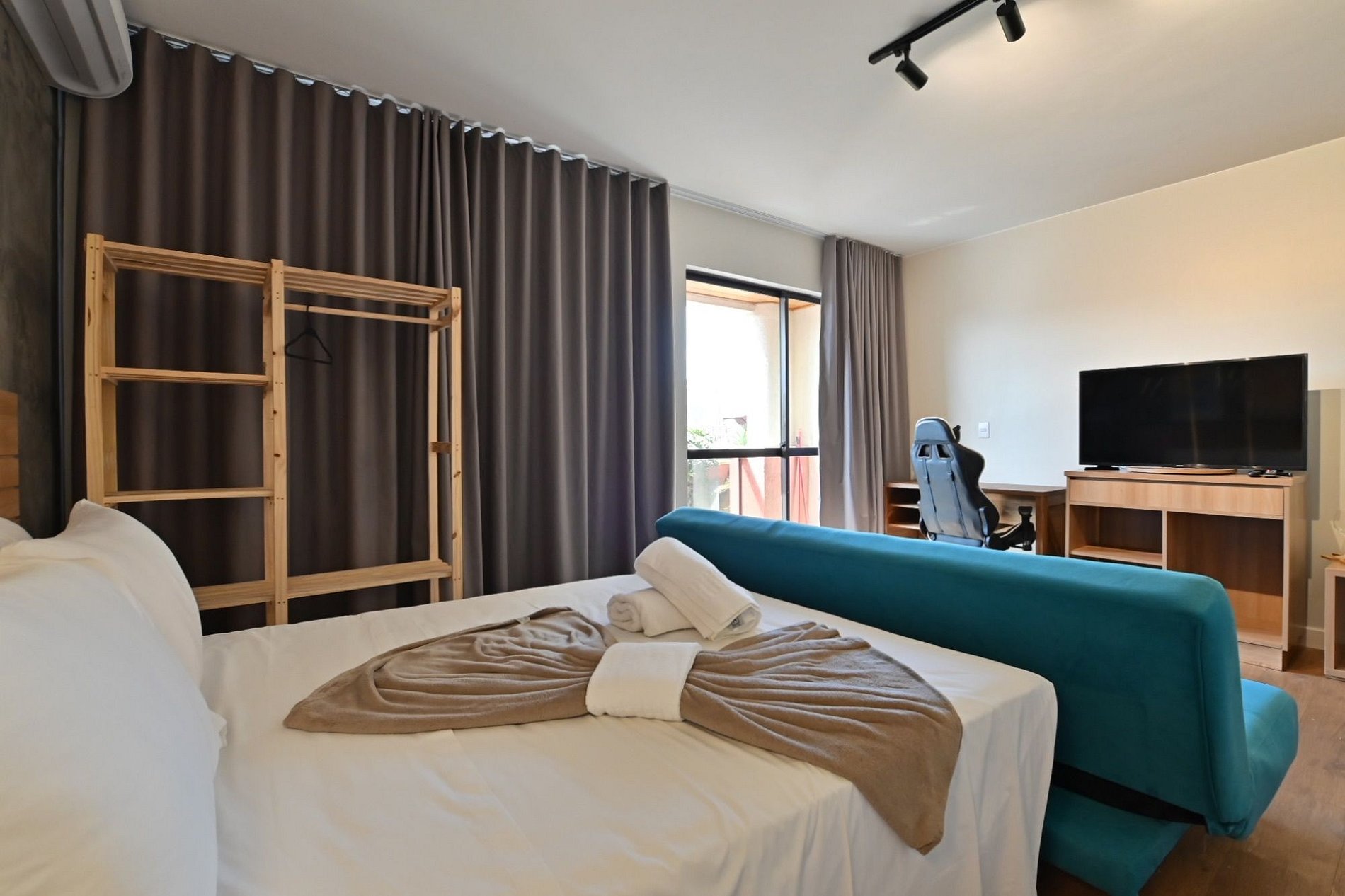 Excelente Quarto no condomínio Lake Side! Tudo o que você precisa para poder aproveitar na beira do lago! O condomínio conta com piscina, restaurante, farmácia, conveniência , salão de beleza, academia e muitas outras comodidades. ao lado de restaurantes famosos como O REI DO CAMARÃO e o VENICE! O apartamento possui uma excelente wi-fi, cateira, sanduicheira e o seu Pet é bem-vindo!