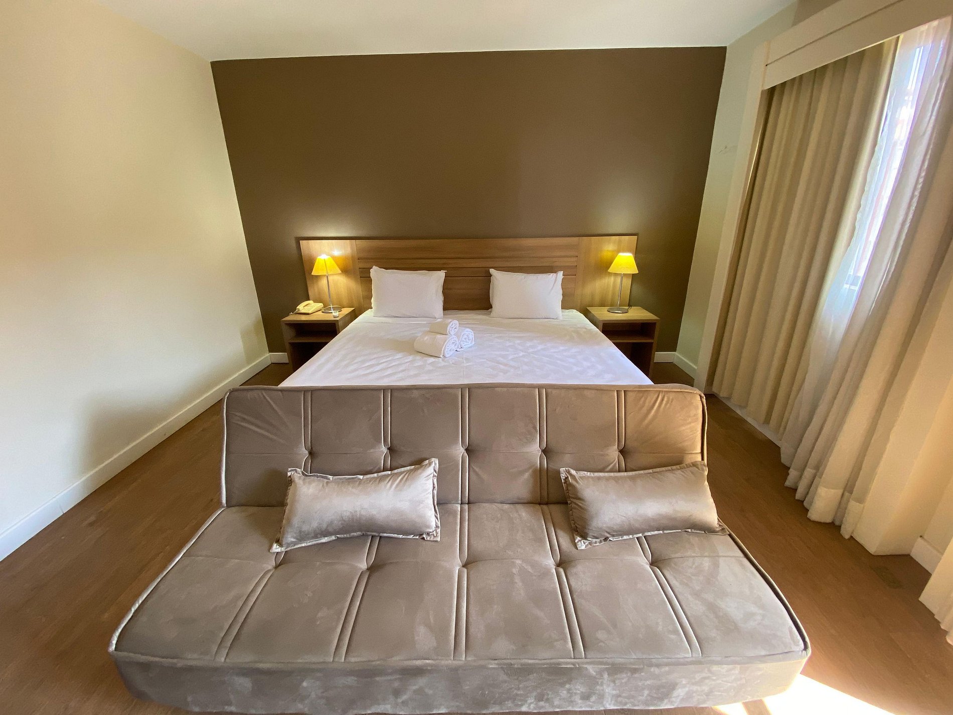 na unidade, voce tera 1 cama king size, 1 sofa-cama e 1 colchao extra.