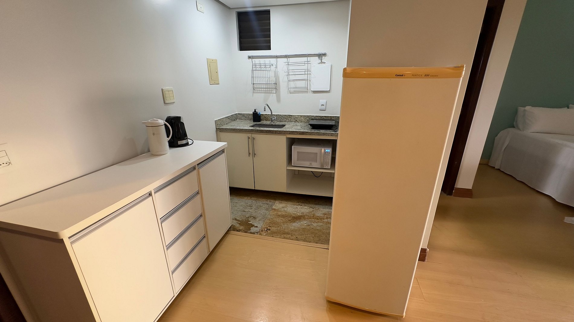 O apartamento possui Wi-fi, televisão SMART, cama casal e cama solteiro com auxiliar, sofa-cama, uma linda vista para o lago, além de uma cozinha equipada com cafeteira, sanduicheira e fogão.
