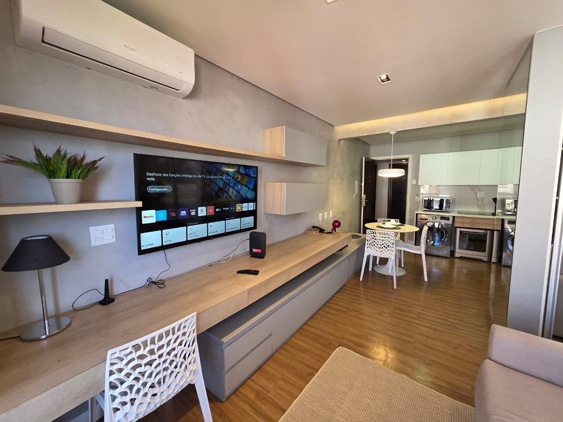 Apartamento para pessoas exigentes com decoração de 1° linha em um condomínio que conta com piscina, restaurante, farmácia, conveniência , salão de beleza, academia e outras comodidades. A vista da varanda é incrível! Além disso possui uma cozinha sofisticada e equipada com cafeteira dolce gusto, sanduicheira, air fry, forno, maquina de lavar e lava-louça. O apartamento possui uma excelente wi-fi de 250mb , Televisão smart de 50! Este apartamento vai superar suas expectativas!