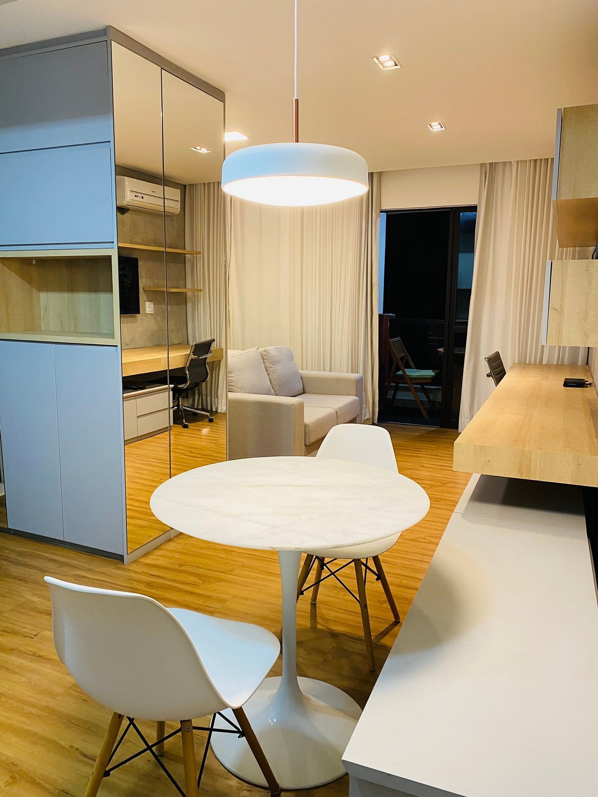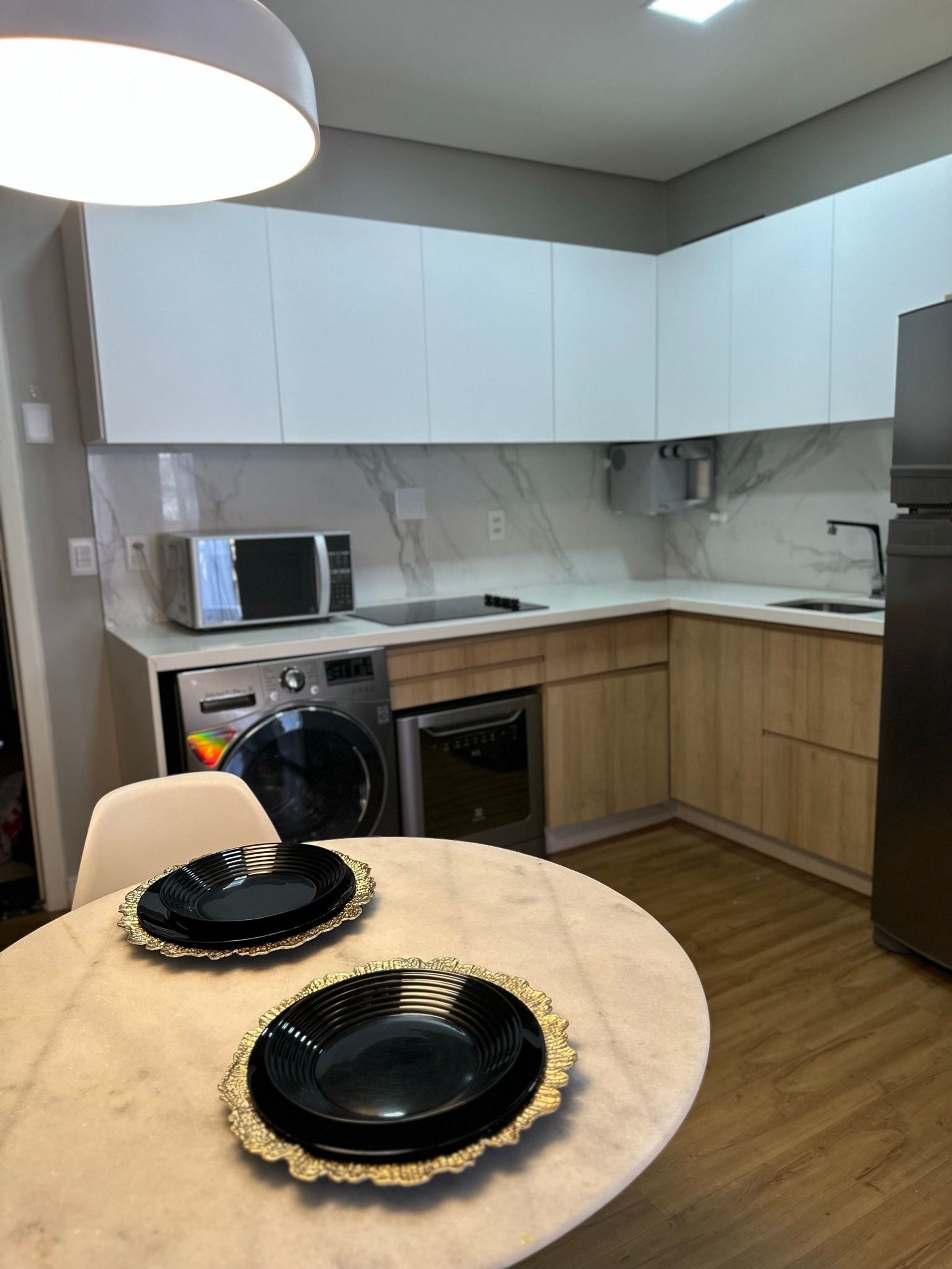 Apartamento para pessoas exigentes com decoração de 1° linha em um condomínio que conta com piscina, restaurante, farmácia, conveniência , salão de beleza, academia e outras comodidades. A vista da varanda é incrível! Além disso possui uma cozinha sofisticada e equipada com cafeteira dolce gusto, sanduicheira, air fry, forno, maquina de lavar e lava-louça. O apartamento possui uma excelente wi-fi de 250mb , Televisão smart de 50! Este apartamento vai superar suas expectativas!